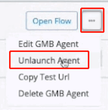 If you wanted to stop the bot automation, click the green "Active" button under status. And to stop showing the bot with your business, you need to unlaunch your agent.