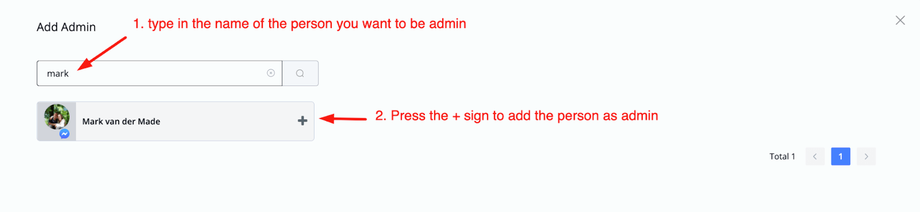 Just type in the name of the person you want to have as an admin and press the plus sign to have them added as an admin. Once you press the plus sign you will return to the main menu where you can manage all admins.