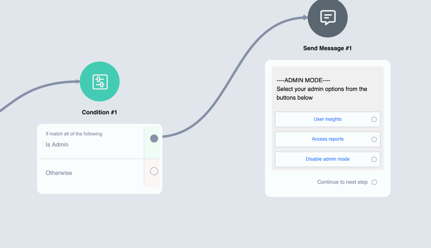 Now that you have appointed an admin you can set up admin specific flows for them. This is ideal if you want to give a business owner some insights as to what is going on inside the chatbot but don’t want to give access to the backend of that chatbot.