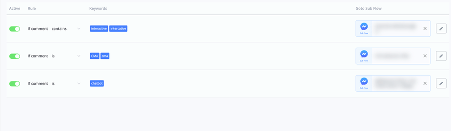A very important and great feature inside of Channel Automation is the ability to let the chatbot comment, like and send a person a pm when that person responds to on a post on your Facebook and or Instagram page.