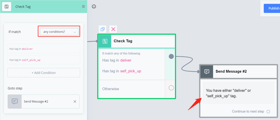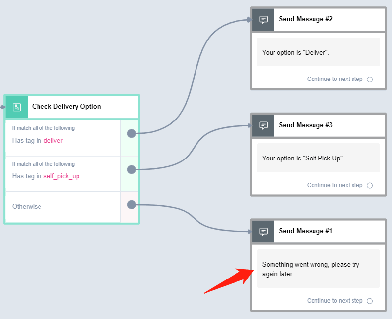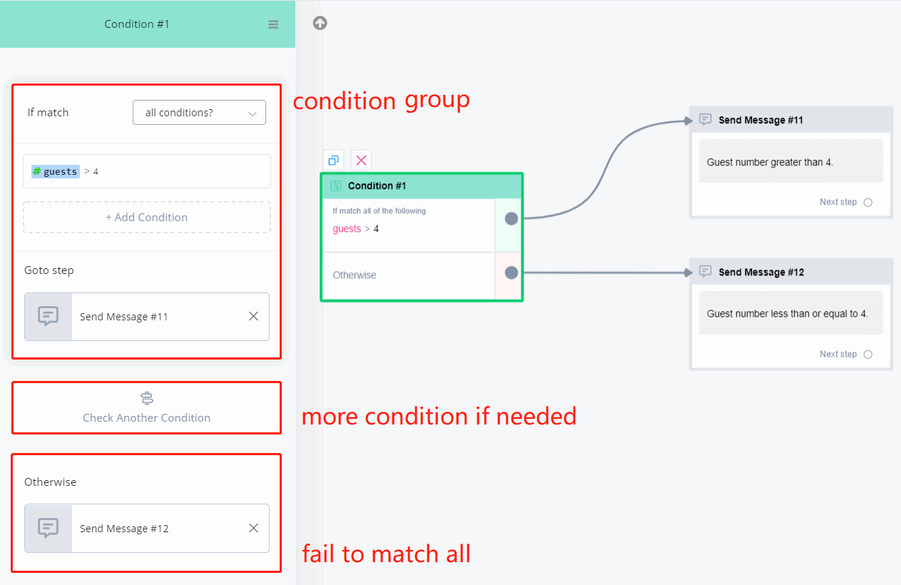 In your Condition step, click on "+ Add Condition Group" to set at least one condition group. "Otherwise" group is always there.