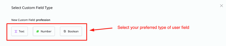 Just name your new user field. The next step is to select what kind of user field you like to create. Currently, we have the following available for you: