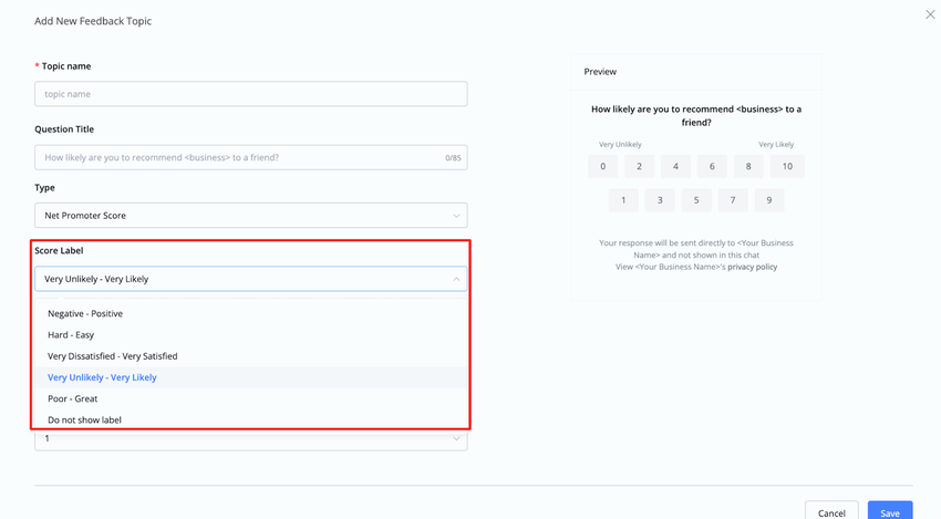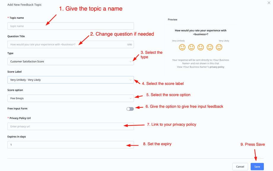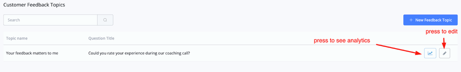 Once done you can press save. You will be taken back to the main overview and you will be able to manage the customer feedback topic you just created from there.