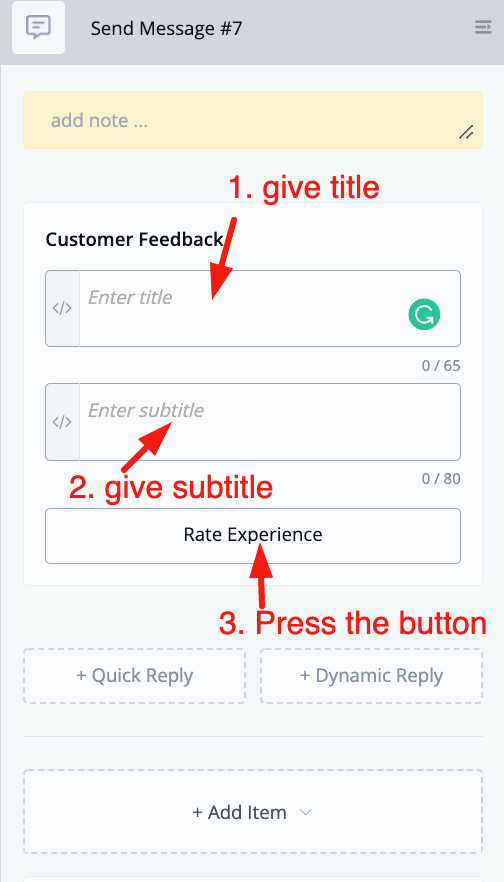 This is easily done inside of the flow builder. Just go to any flow you want to set up for this. From here create a send message block, then select Customer Feedback.