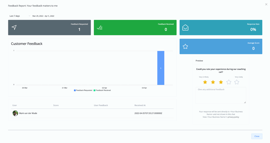 A fantastic way inside the chatbot to collect feedback is to use Channel Automation’s native module for this. It will allow you to gather not only feedback but also allows you to know when a user is not satisfied with the product or service you provide, which you can then proactively contact to resolve any issues there might be.