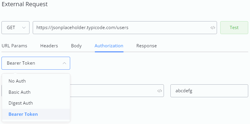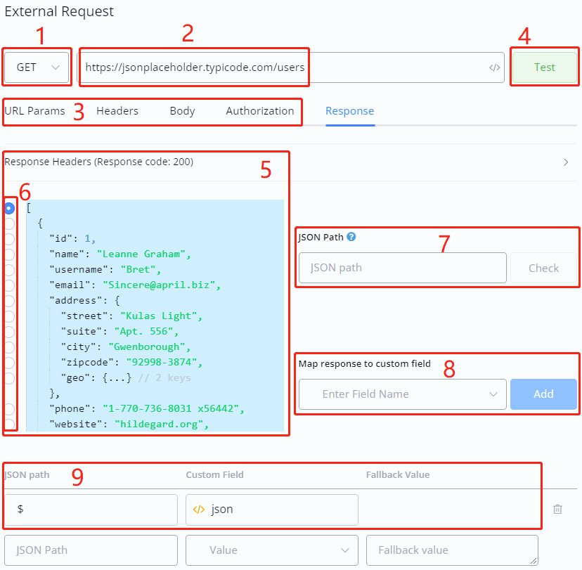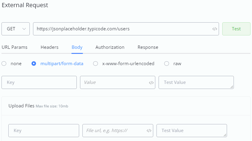Once you are ready, click on the Test button next to the URL endpoint or in the Response section.