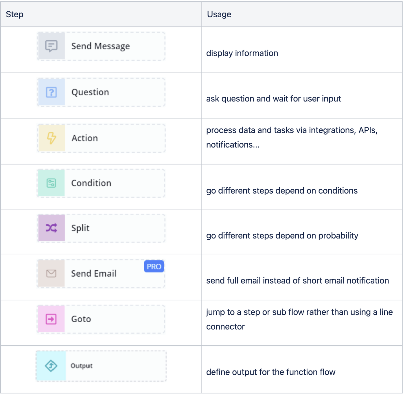 The differences among different types of flow are Flow Setup, Send Message Step and Question Step. Each channel has its own limitation of message types. For example, you can display a product gallery in Facebook Messenger while the SMS channel doesn't support that.