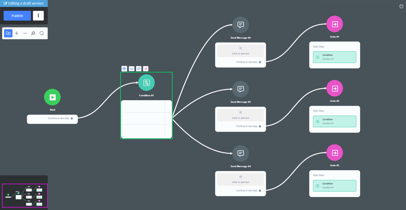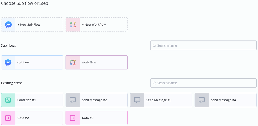 Create new subflow directly, or choose an existing one. You can only jump to a step in the current subflow.