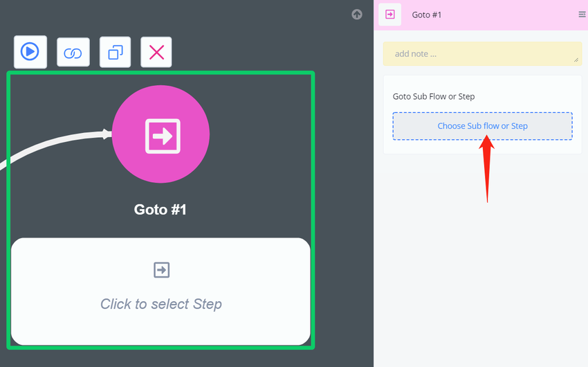 "Goto Step" helps you jump to another step in the current subflow or jump to the start point of another subflow.