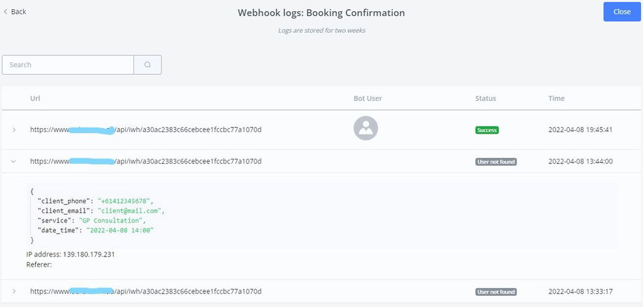If that webhook is built in a Voice bot, the bot can even call the client right away!