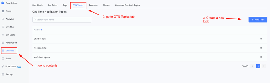Once pressed the topic will be created and you will be able to use it to request an opt-in from your subscriber.