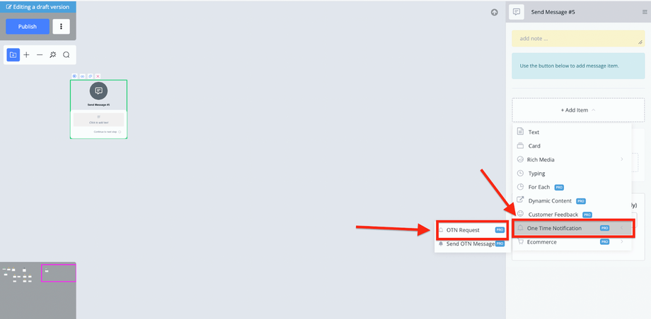 Just go to your flow then insert a Send Message block, then go to One Time Notification -› OTN Request.