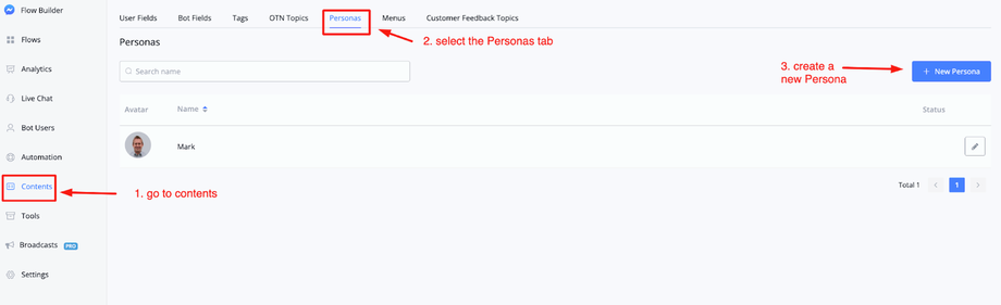 To create a new persona you can go to Contents from the left-hand menu, then to the Personas tab.