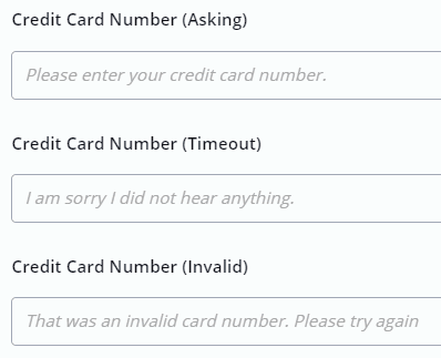 Each information has 3 speeches to set, asking, timeout and invalid: