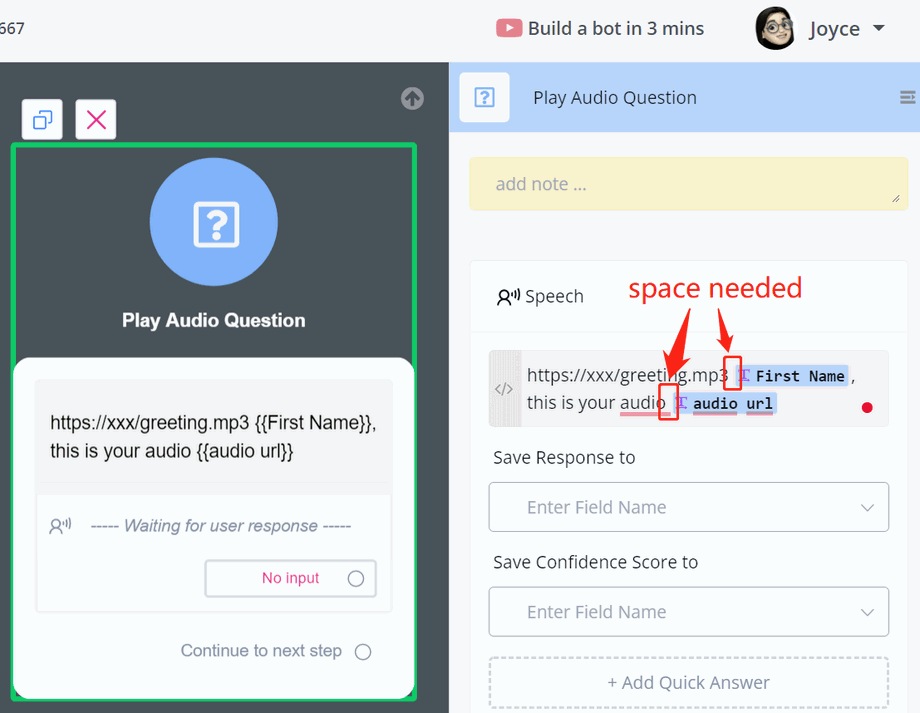 Quick answers are convenient for users to click rather than typing. When you set quick answer: