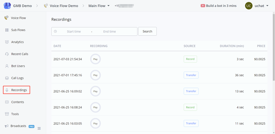 You can record the conversation after transferring for training purposes, etc. Similarly, check the recording from the "Recordings" section from the left sidebar.