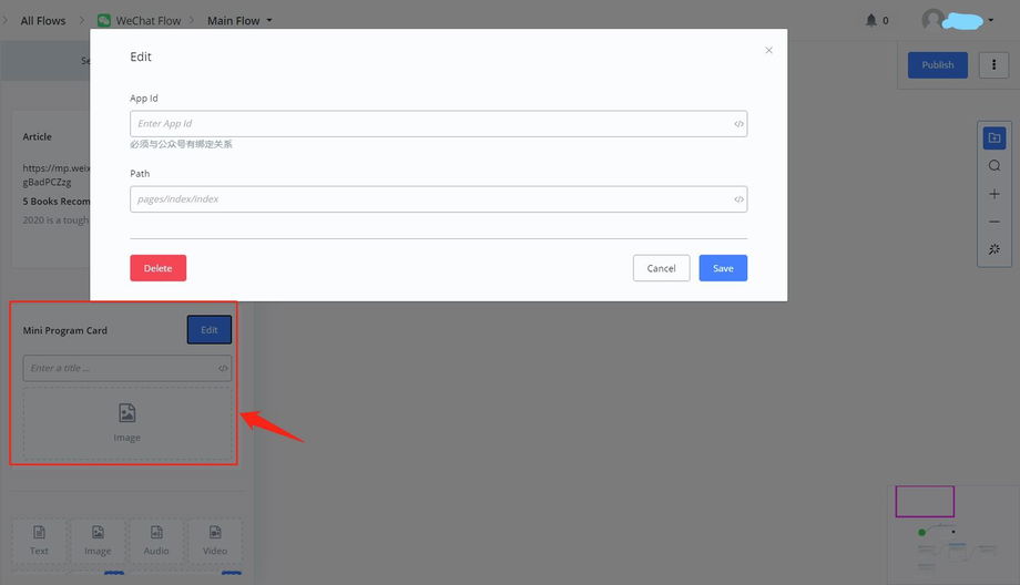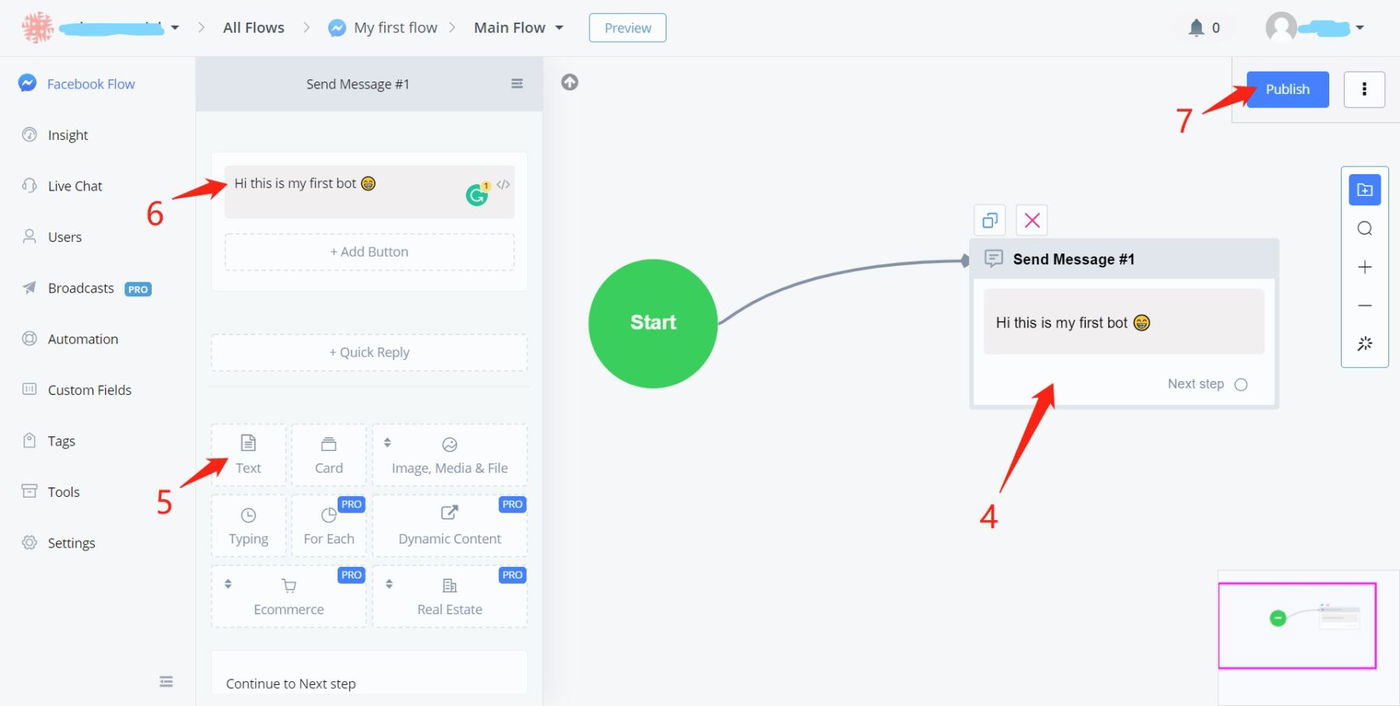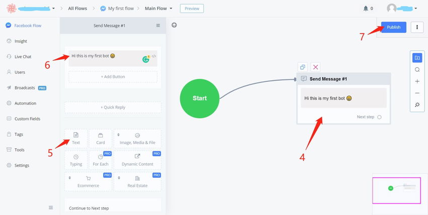 Telegram flow is our newly added flow type. It is similar to Facebook flow except for some exclusive features with Facebook. Please check Facebook flow for guidance for now. Text tutorial about Telegram flow will be updated shortly.
