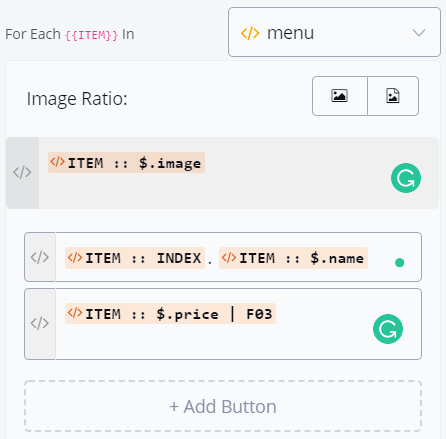 When you add a button to your "For Each", the button is going to show with every card. Usually, you might want to put a "Buy" or "Select" button here in the case that you are listing some products or options.