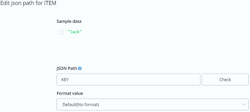 in the JSON path, add key name if needed. In this case, let's show the name of the selected item. So add ".name" after the path.