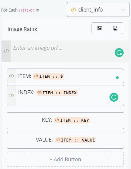 Great! Now you see how to use the "For Each". Apart from the keys in the JSON variable, there are 3 hidden key you might need: