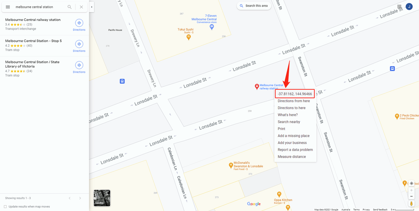 To send a location, search it on a map, then right-click it to copy its latitude and longitude values: