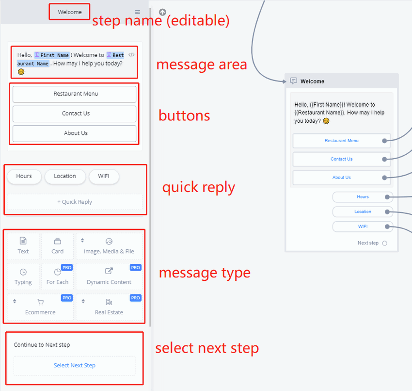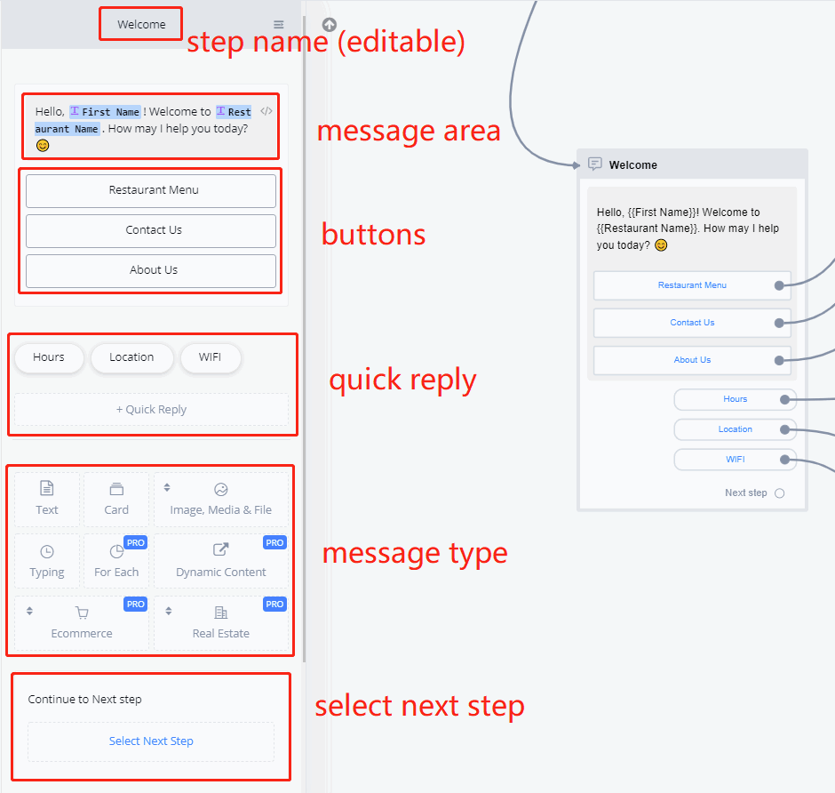 Let me show you some more details about Send Message step. These are the message type in common for all/some of the Channels.