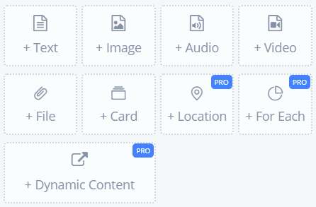 Dynamic Content helps you send out an API request, to your server or a third-party server, in order to get a response to display. The server can reply differently each time. In this way, your bot is able to display dynamic content to your users.