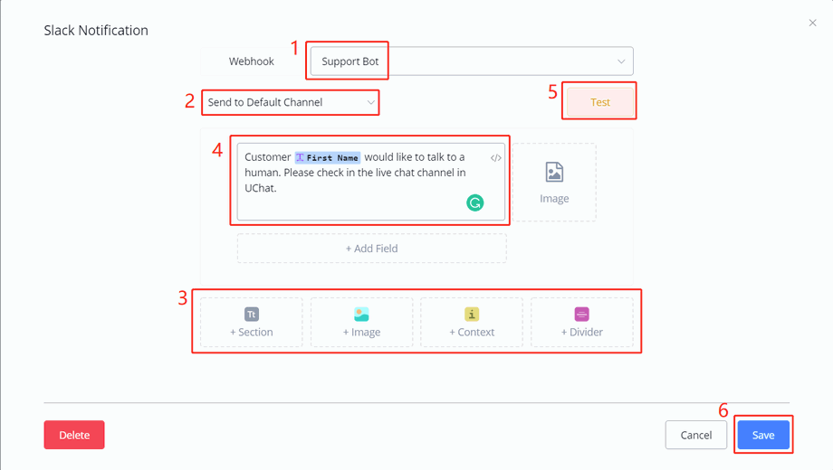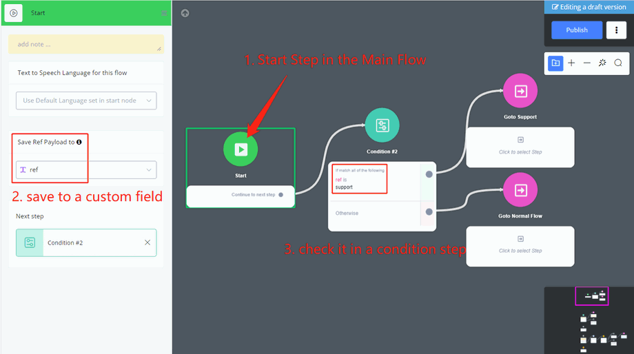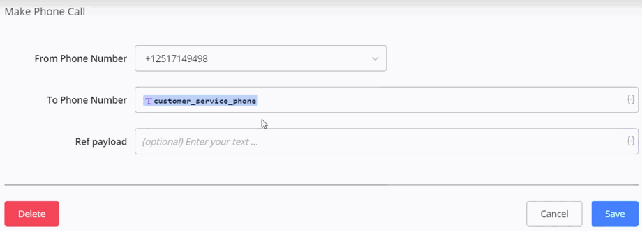 For example, set the payload to "support" here in the notification action and in your voice flow: