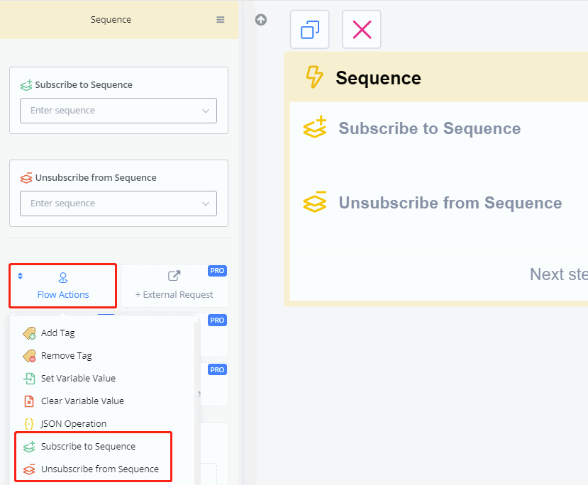 Go "Flow Actions", and you can find the 2 sequence operations.
