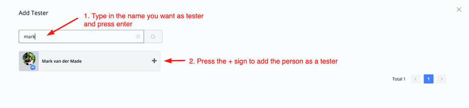 To create a new tester just press the button in the top right corner named + New Tester. From here you will be able to type in the name of the person you would like to be a tester inside your chatbot.