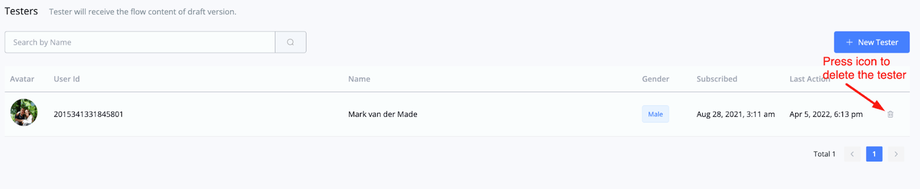 You will see the users who are invited by you as a tester and if you want to delete them you can press the trashbin icon to the right of each user to do so.