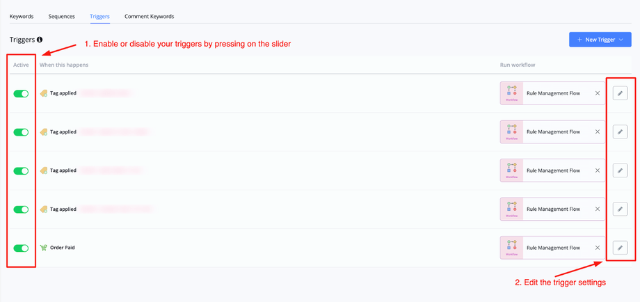 You can enable or disable them by pressing the slider on the left of the actual trigger