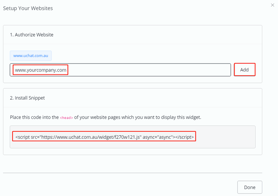 Add the websites that you want to put this bot at. Then install the snippet by copying and pasting the code.