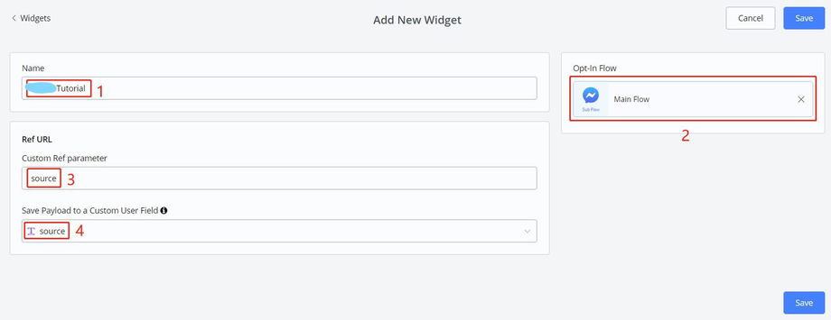 However, you would like to gather more information from the link, like where did your users get the link? In this case, you can put "source" in area 3 and a variable to store the source at area 4 in the above picture.