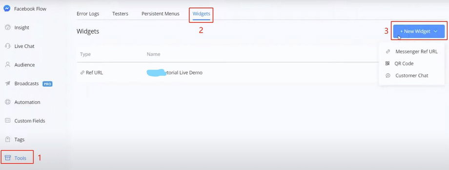 For Facebook bots, you can set some widgets to quickly start talking to the bot. To setup: