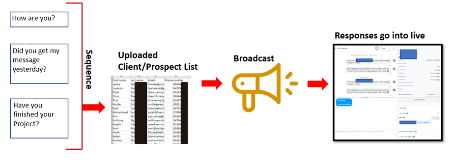 A Broadcast is sending out a message, or series of messages, to specific set of contacts.
