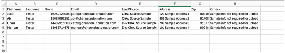 - Note: Even if the contact has previously been added to Channel Automation, include them in the .CSV file so they can be properly segmented.