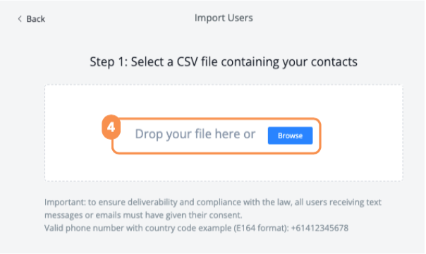 - Browse to locate your CSV file or simply drag and drop the file into this box.