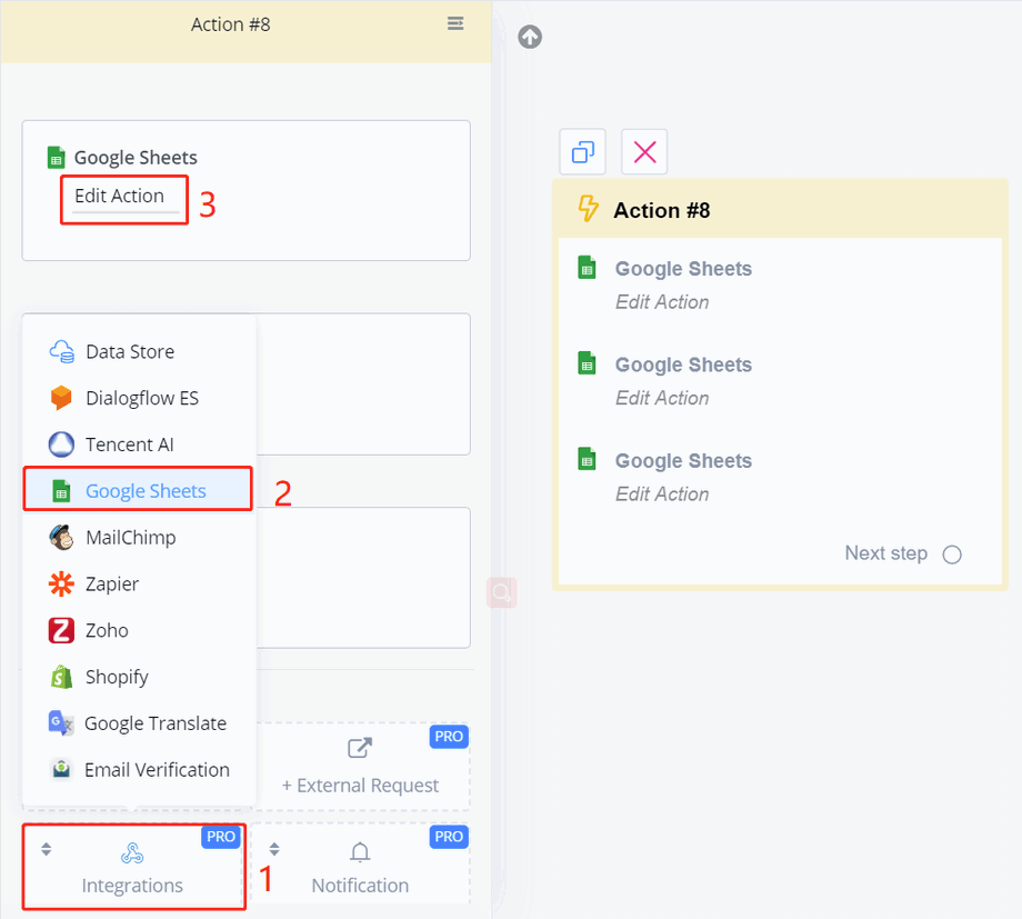 Name the spreadsheet and worksheet properly at area 1 and 2. You will need them when you manage your data in the Action step.