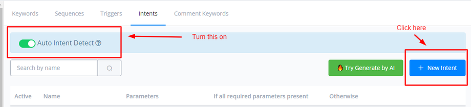Enable the “Auto Intent Detect” slider. If you receive an error here, please make sure that your OpenAI account is properly integrated.