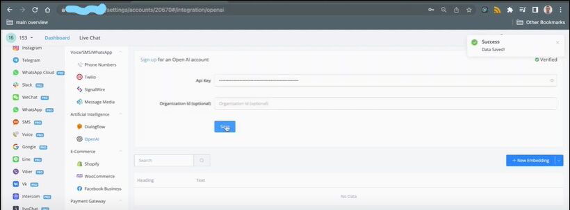 Follow the steps to integrate your OpenAI account with your Channel Automation account.