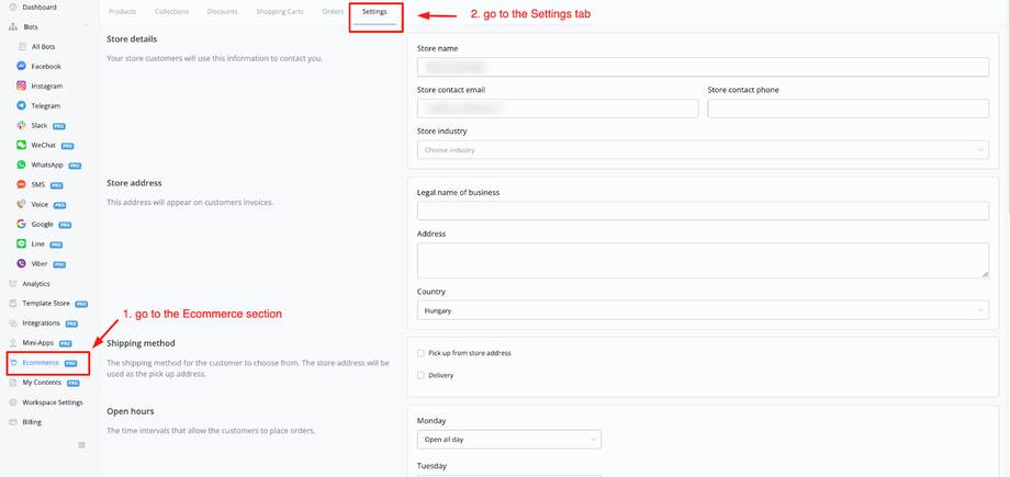 From your main Dashboard go to Ecommerce on the left-hand menu.