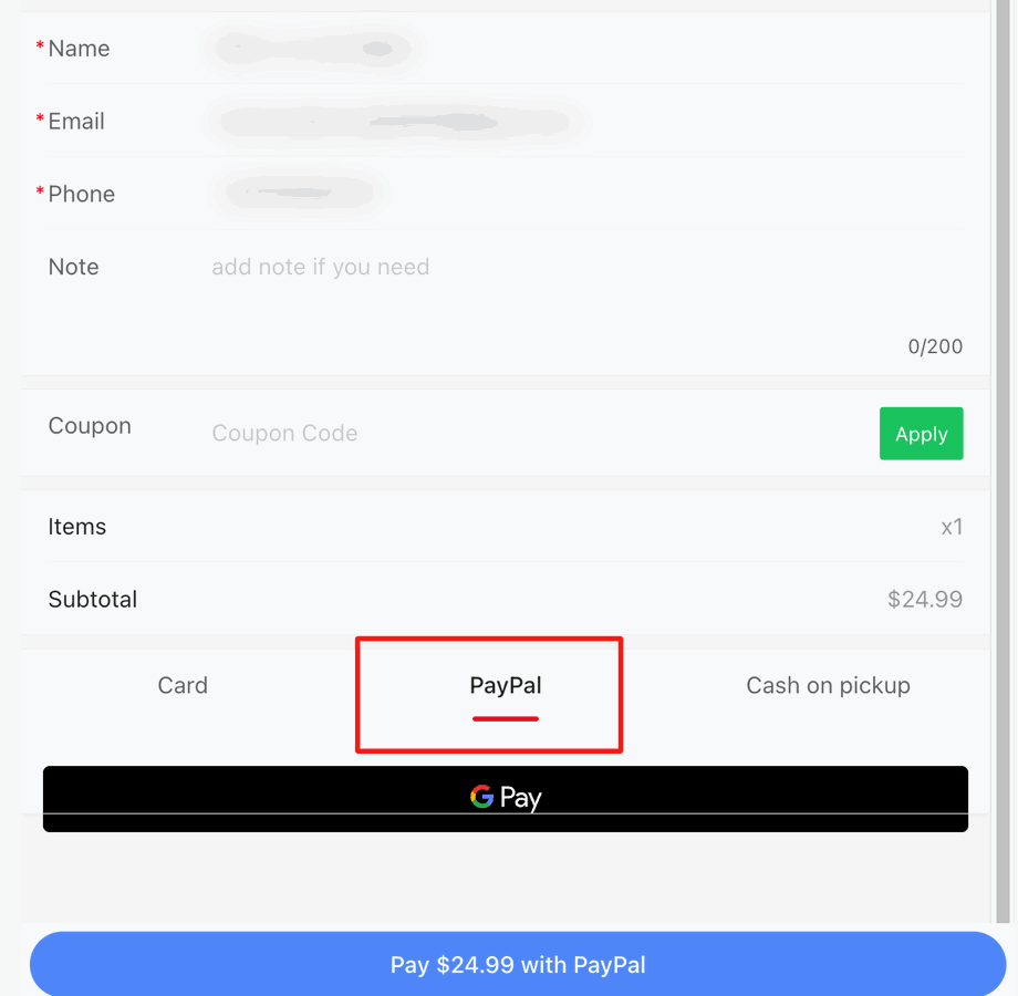 Using the built-in ecommerce store is a fantastic way of selling your products. Once the user presses the checkout button in the conversation they will be taken to the online checkout section where they now can select PayPal to pay with.