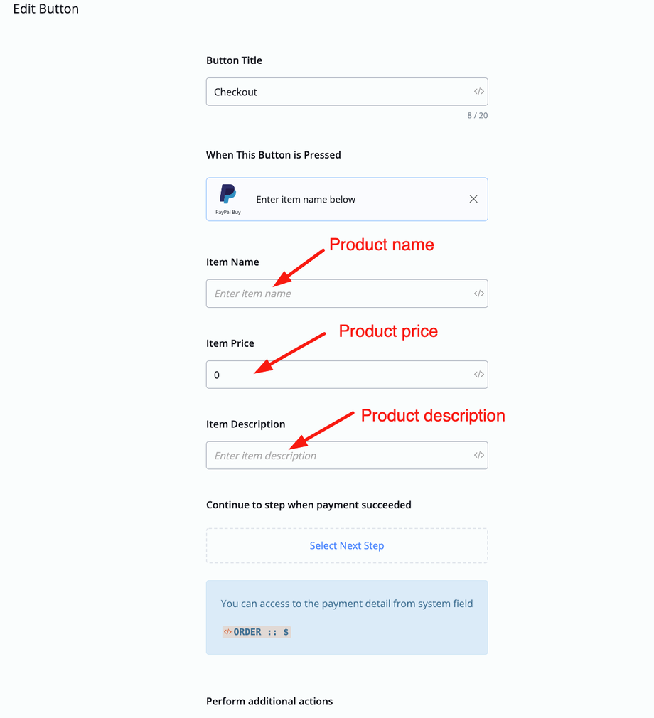 Another way of using the PayPal integration is by using the direct button for this. Very useful if you just want to sell a single product or service.