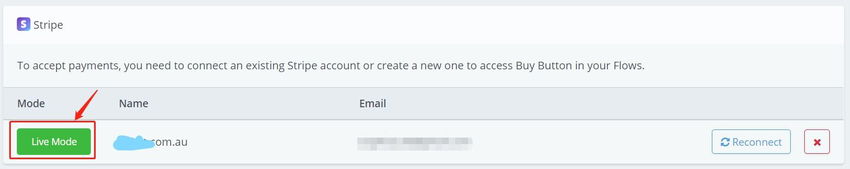 Click on the green button to change it from "Live Mode" to "Test Mode".